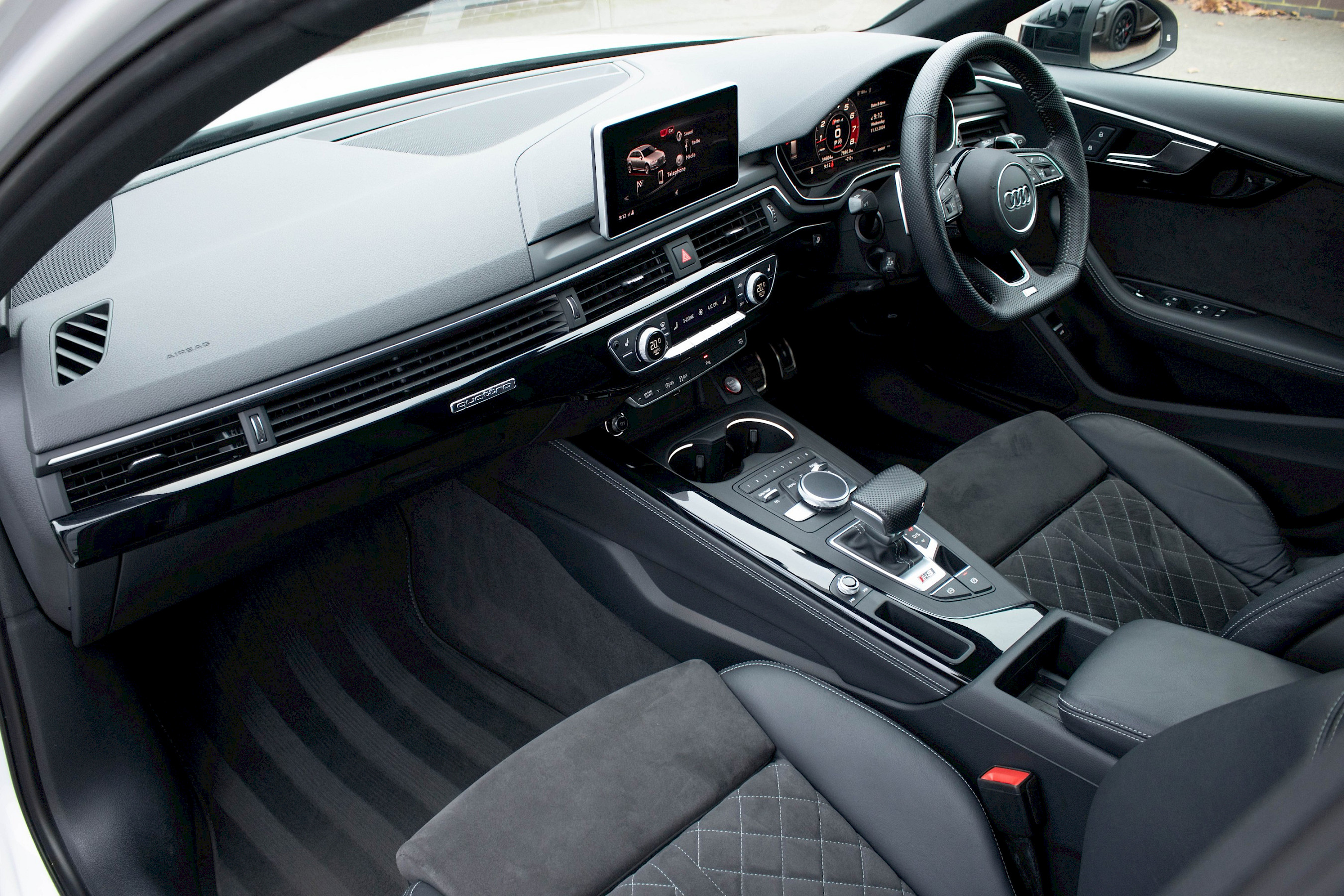 2019/19 Audi RS4 Avant Sport Edition finished in Arkona White with Black leather. This example benefits from a few OEM+ visual changes which include a set of 20-inch Gloss Black Riviera wheels and a Maxton Gloss Black exterior styling package. Next service not due until August 2025 or 7,500 miles.
